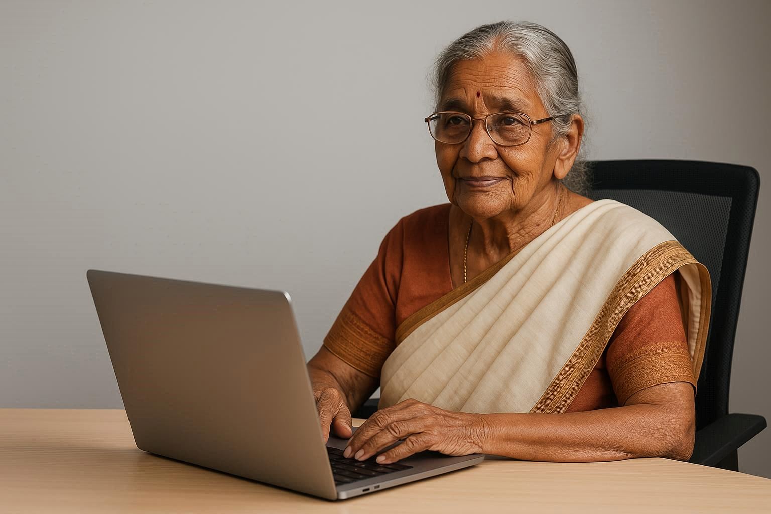 Portrait of an elderly indian woman in traditional sari